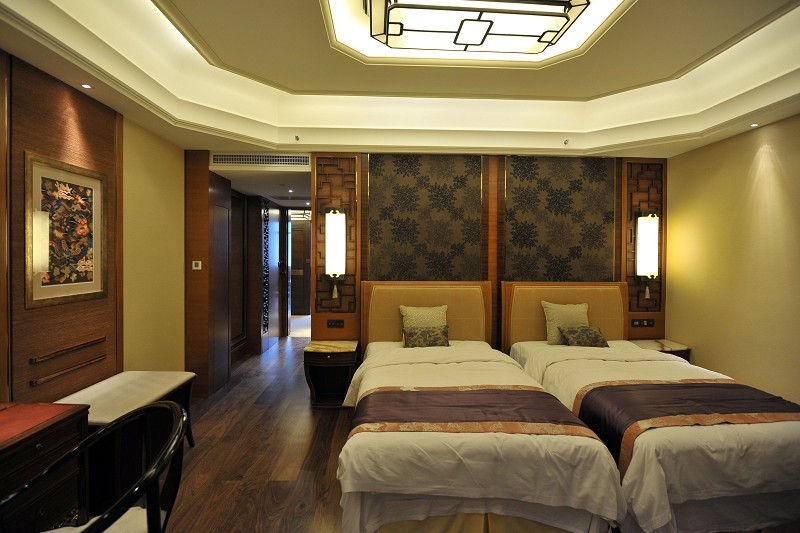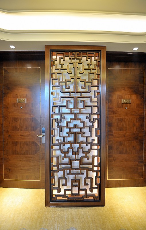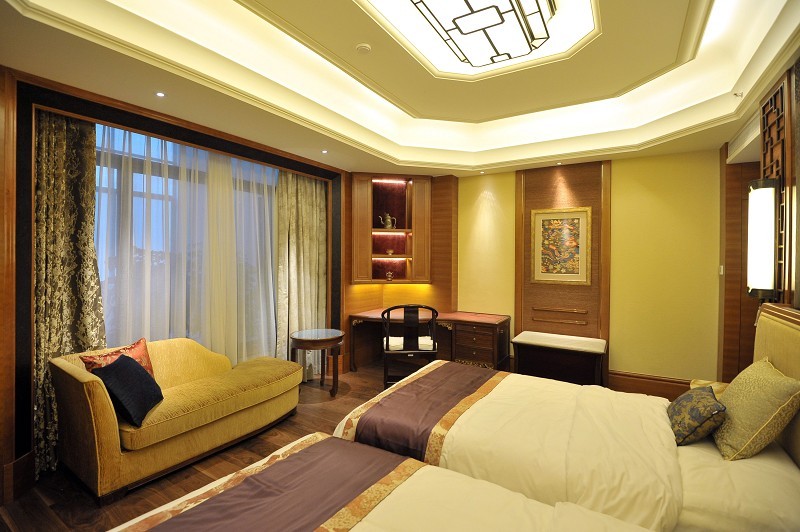 酒店位于香格里拉市中心,距机场仅10分钟车程。客人抵达酒店后,将由身着康巴特色服饰的礼宾员带领沿着回廊走过点缀着铜荷花的平静水池,进入两层楼高的大堂。大堂顶部,橙金色的蚀刻铜片把天窗透入的微妙光折射在另一处室内的水景上,在廊柱间投画出别致的光影空间。