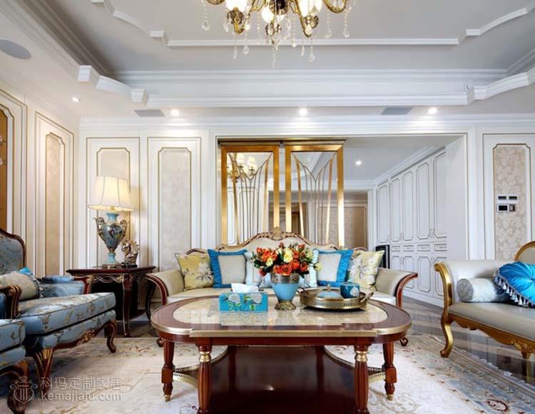 法式家居常用洗白处理与华丽配色,洗白手法传达法式乡村特有的内敛特质与风情,配色以白、金、深色的木色为主调。布局上突出轴线的对称,恢宏的气势,豪华舒适的居住空间。